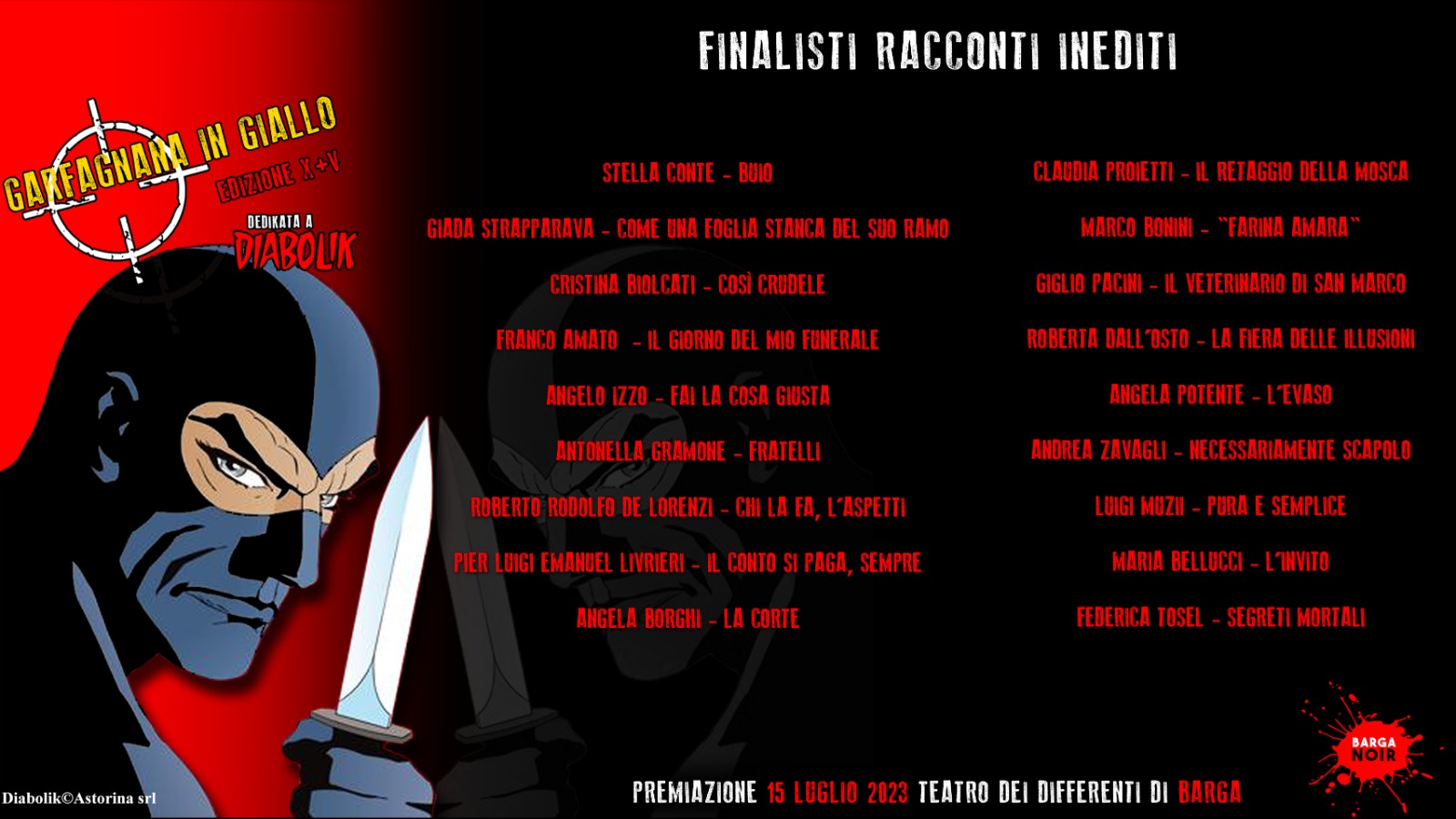 Premiazione sabato 15 luglio presso il Teatro dei Differenti di Barga (Lucca) a partire dalle ore 16.